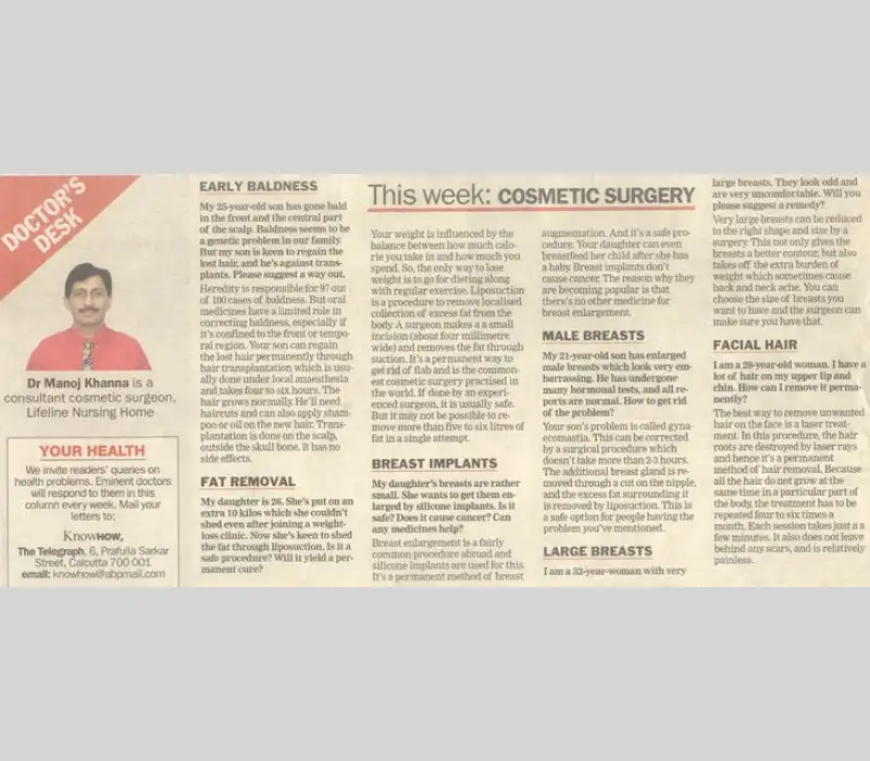 Meet Dr Manoj Khanna, one of the top 10 plastic surgeons in India for hair transplants.