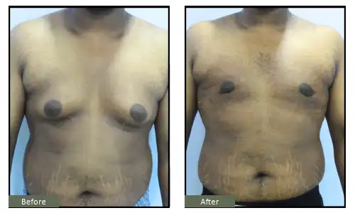 The gallery presents results focused on achieving a masculine chest profile with balanced contours.
